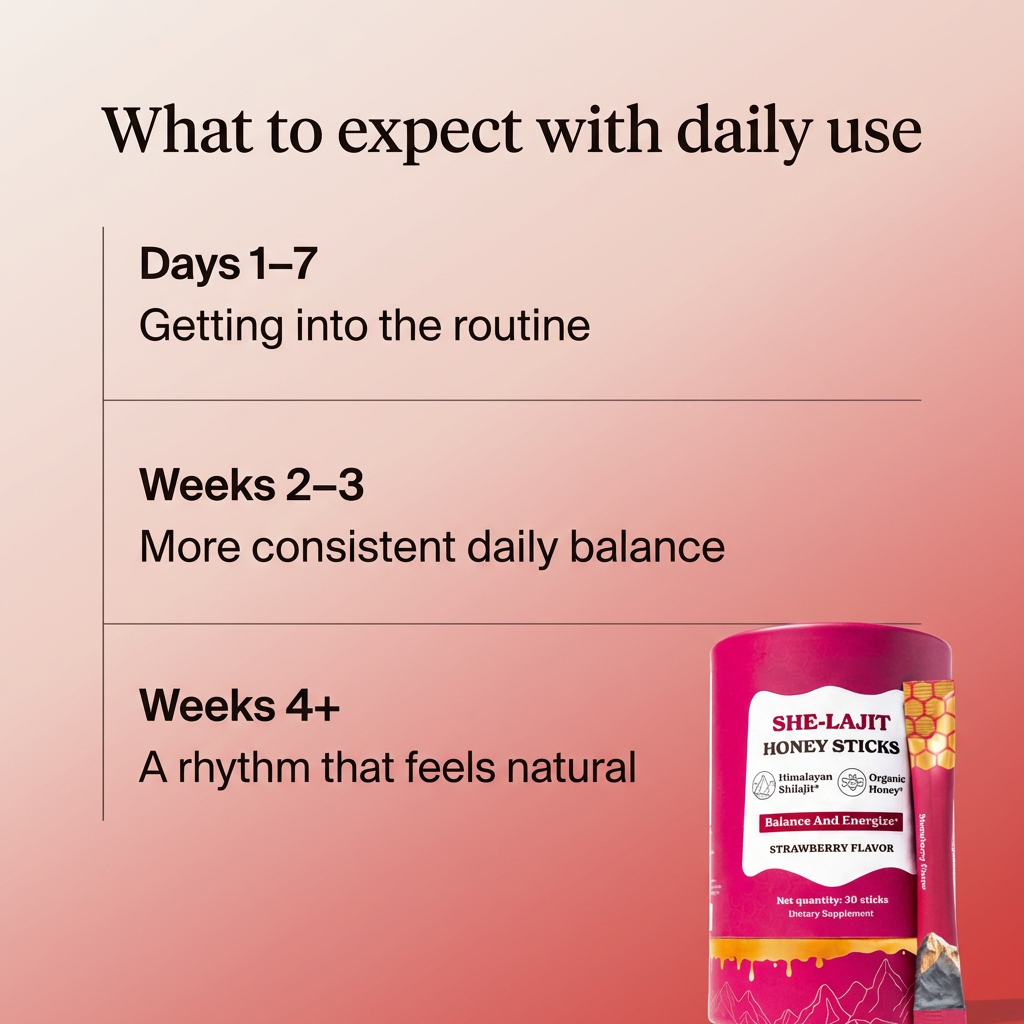 She-Lajit is commonly taken alongside daily supplements or wellness routines. It’s designed to fit in, not replace everything else you’re already using.