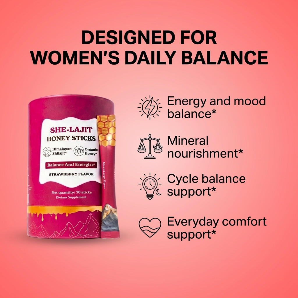 She-Lajit Honey Sticks are for women who feel off — low energy, inconsistent desire, or not as connected to their body as they used to be.